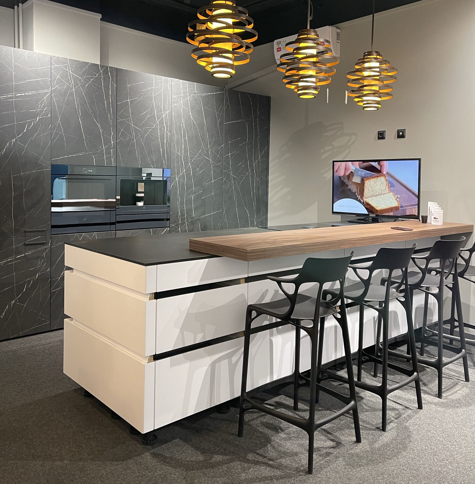 СОСТАВ ПРОЕКТА: мебельный ряд высоких шкафов с системой скрытой кухни. В состав проектра НЕ входит встраиваемая техника, кварцевая столешница и фартук